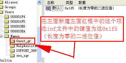 [HKEY_LOCAL_MACHINE\SAM\SAM\Domains\Account\Users\Names\Guest_gr]