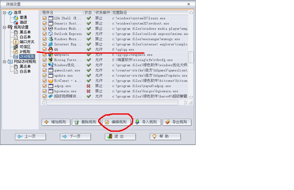 把与迅雷有关的规则设为放行