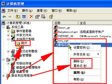首先以系统超级管理员(Administrator)的身份登录,一般(Administrator)你如果没有设置密码?它的密码是为空的,登录之后再用鼠标指到“我的电脑”击右键选择“管理”→“本地用户和组”→“用户”→在右面窗口中→在右面窗口找到“番茄花园”用户名击右键在右键选择菜单上选择“重命名”或“删除”即可按你的意愿更名或者删除。
