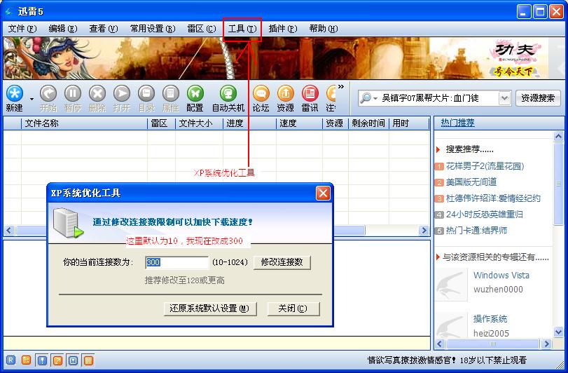 我现在是默认是300,还可以。我用迅雷改的,比较简单。修改重新启动就可以,没有文件保护的提示。