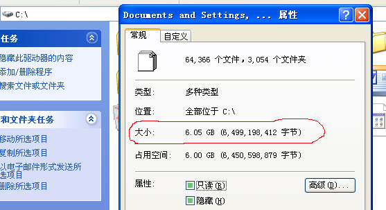 我的硬盘C:最近出现了一个怪现象,从硬盘属性看,硬盘已用空间已经达到9.8GB,而当我打开C:,选中所有的文件,包括隐藏文件等,察看属性,所有文件占用6.05GB,怎么我的硬盘有近4GB的空间不翼而飞了,高手们,我能不能把这4GB的空间找回来?谢谢了