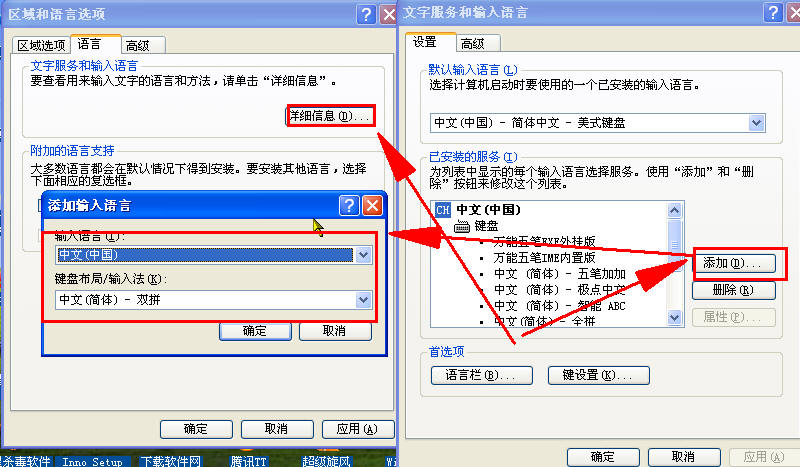 在控制面板里找到“区域和语言选项”首先它人地区信息然后在“语言”卡项里添加它人输入法(不过首先要确认系统里都安装了它的这些语言和输入法)参见下图
