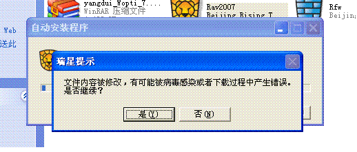 【跪求】为何我刚下的瑞星2007,安装时提示文件被修改?(附图)