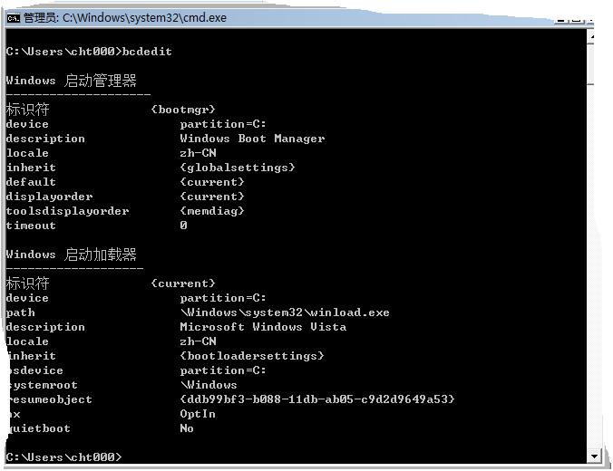 回四楼:bcdedit的几个常用参数(可以用bcdedit /?查看)