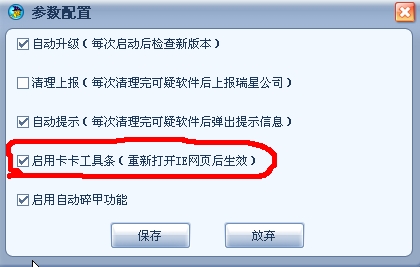 【不吃羊的麦苗的贴子】我用的是3.2.0.7版本的卡卡上网助手,可工具条老是上不了IE,我在设置里面也设置了,“查看”栏里也点了,但为什么上不了呢?上不了就不能拦截广告,怎么办呢?哪位老兄行行好吧