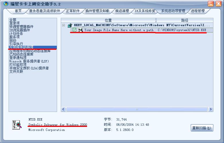 如题,可否终止此进程?该进程描述为SYMB0LIC DEBUGGER FOR WINDOWS 2000,但我的机没有装过WIN2000A啊!下面有图: