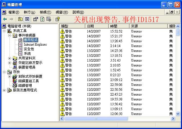 其实是XP系统中,比较常见的一个现象,事件日志中常常出现的一个日志: