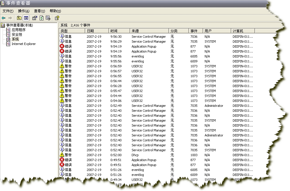 除了“安全性”,打开其他项目,“清除所有事件”