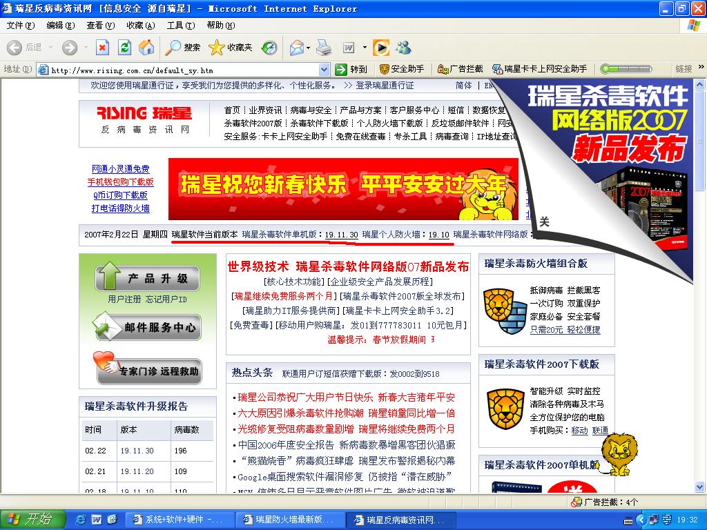 瑞星防火墙最新版本是多少了?还有为什么无法升级