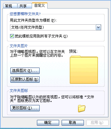 右键-属性-自定义-在"用此文件夹作为模板"选文档,图片,相册,视频等.