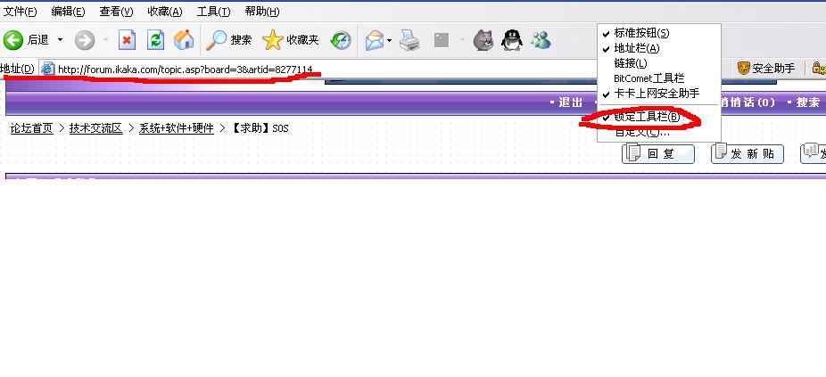 是地址栏吗,右键点击,把“锁定工具栏”前面的钩去掉。地址栏肯定被你隐藏掉了,你把它拉出来就可以了,再锁定工具栏
