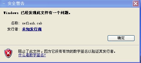 按“确定”。那是FLASH播放软件,没有通过微软数字签名认证,所以会有这样的提示。