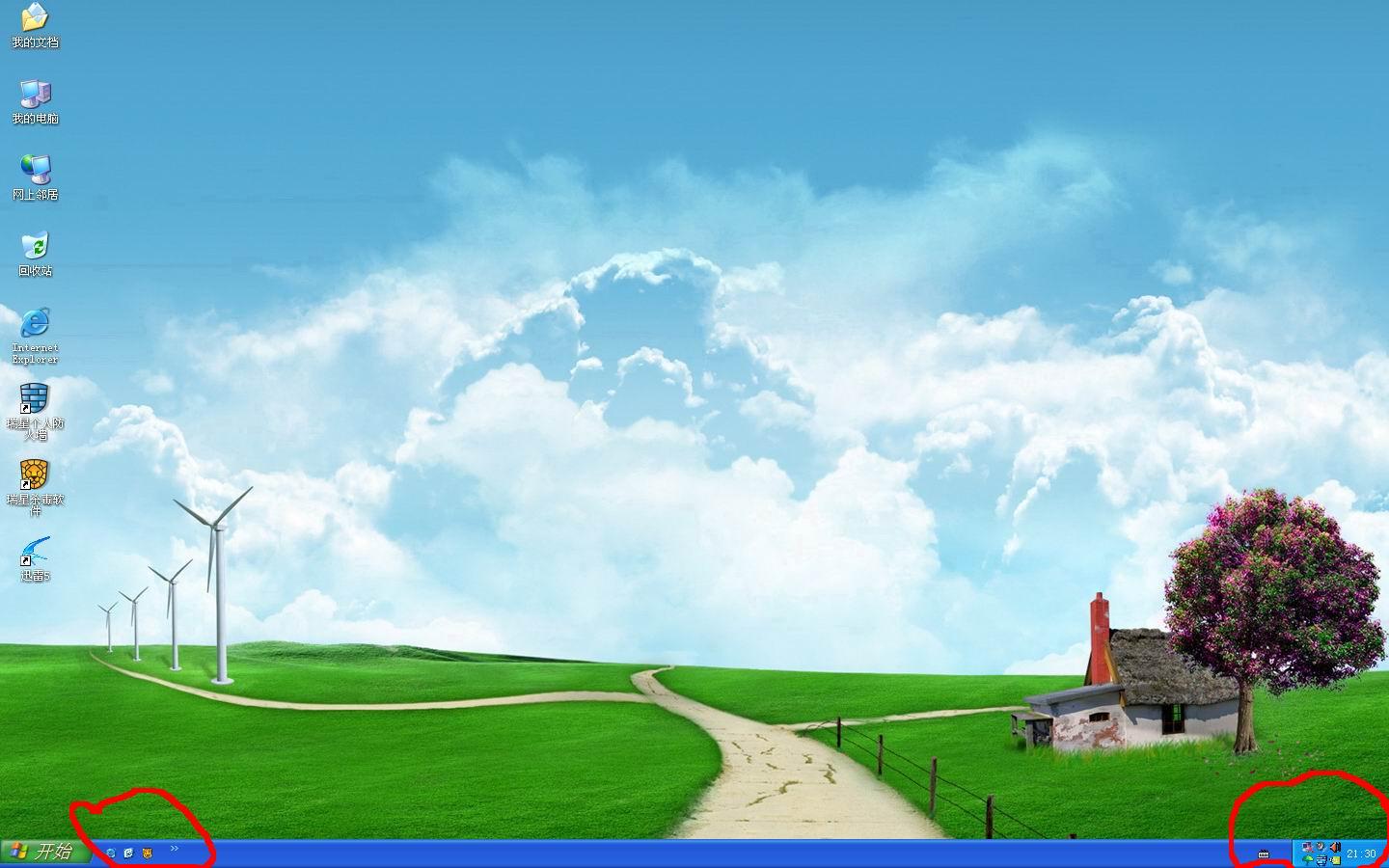 【慕容妍晨的贴子】我的桌面任务栏的图标怎么那么小啊`(如图红框内),而我桌面上的图标蛮正常列~
