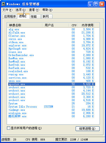 为何我的 spoolsv.exe 占用系统资源那么 高?如下图:有时候去到70%!