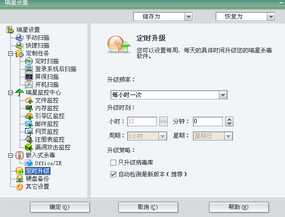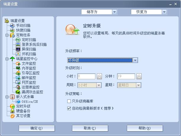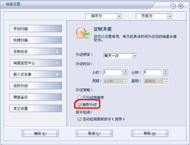 我瑞星里面没有静默升级的选项了``下面是我的截图`: