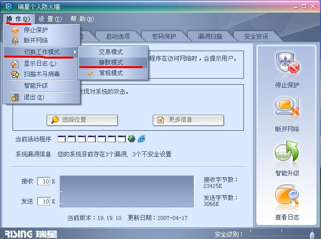 【超级游戏迷的贴子】是不是瑞星防火墙在升级?瑞星防火墙有静默工作模式的设置,如果是,改成常规模式就OK。