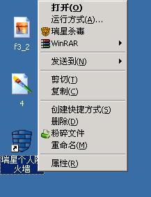 就是那个粉碎文件功能 如果点桌面上瑞星防火墙的快捷方式 它会在右键里面变成双胞胎~其他的都是独生子~哈