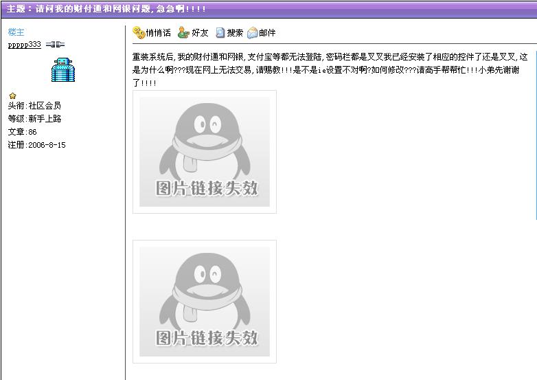 重装系统后,我的财付通和网银,支付宝等都无法登陆,密码栏都是叉叉我已经安装了相应的控件了还是叉叉,这是为什么啊???现在网上无法交易,请赐教!!!是不是ie设置不对啊?如何修改???请高手帮帮忙!!!小弟先谢谢了!!!!