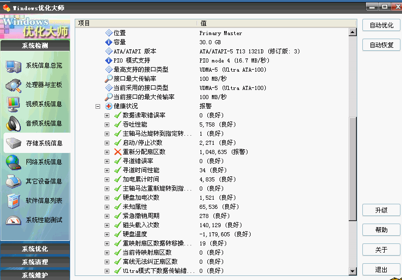 【城城无风的贴子】我的硬盘健康报警(优化大师检测),有图: