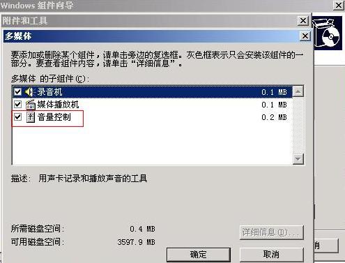 2、利用系统的添加/删除,安装音量控制程序!再把图2中的勾打上!