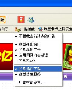 好好看我的第一帖,把IE安全设置级别设置成“中”。然后,看看下图的卡卡上网安全助手的关于插件的设置,确定要安装就暂时先去掉它,安装后再选上它。