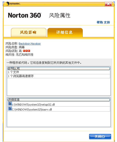 5、启动诺顿的隔离区,恢复netapi32.dll和lsasrv.dll。