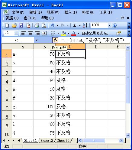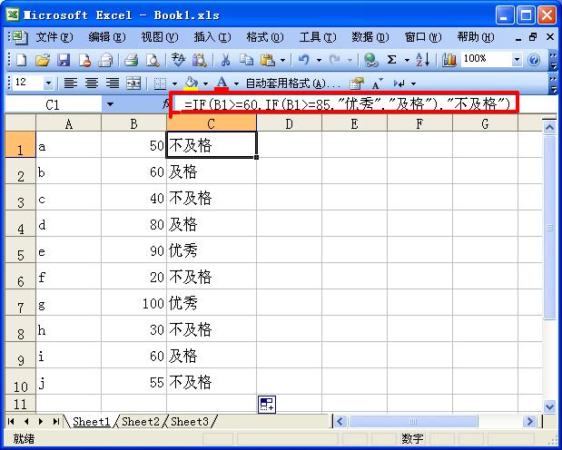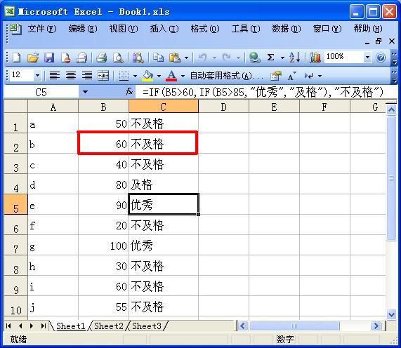 做了个可以显示“不及格”、“及格”和“优秀”三个档次的函数,自己看看罢。可惜的是,60分问题还是没解决,惭愧!