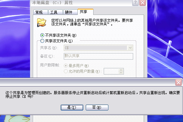 【清风风情的贴子】我的每个盘都是共享 我想把它们改为不共享 却出现下图