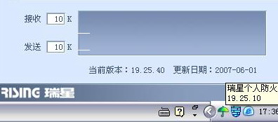 升级瑞星防火墙到19.25.40后出现了奇怪的问题,明明已经升级到了19.25.40,可在右下角的托盘里仍旧是19.25.10,重启防火墙后就有对了,这个问题已经不止一次了,在星期二我把防火墙从19.25升级到19.25.10时也发生了类似的现象,怎么会是啊
