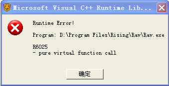 提示的错误是这个,到底是怎么一回事啊,明白的老大帮忙解决下,是不是我的系统坏了?别的朋友在别的软件运行中见到过,瑞星这个错误我是第一次见到。