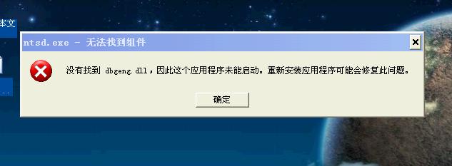 的其他机上拷贝一个DBGENG.DLL粘贴到C:\WINDOWS\SYSTEM32文件夹下,然后:开始--运行--输入REGSVR32 C:\WINDOWS\SYSTEM32\DBGENG.DLL--回车,看能否解决你的问题。