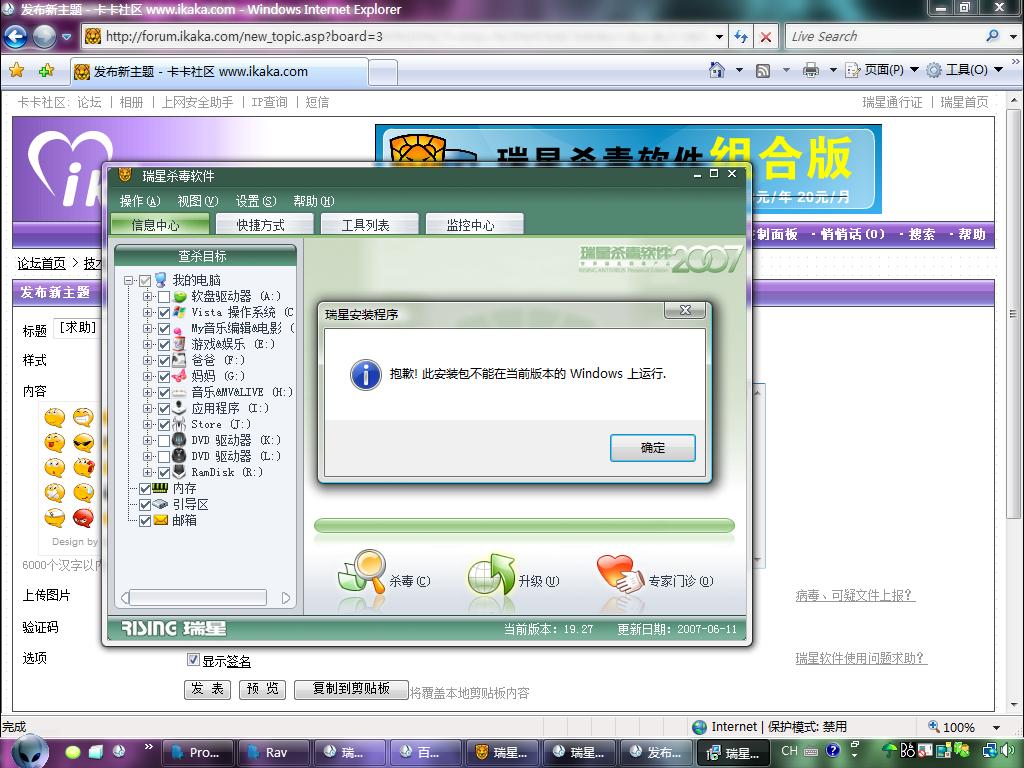 瑞星卡卡安全论坛技术交流区系统软件 【求助】有关vista版瑞星无法升级~!~!~!~!~!