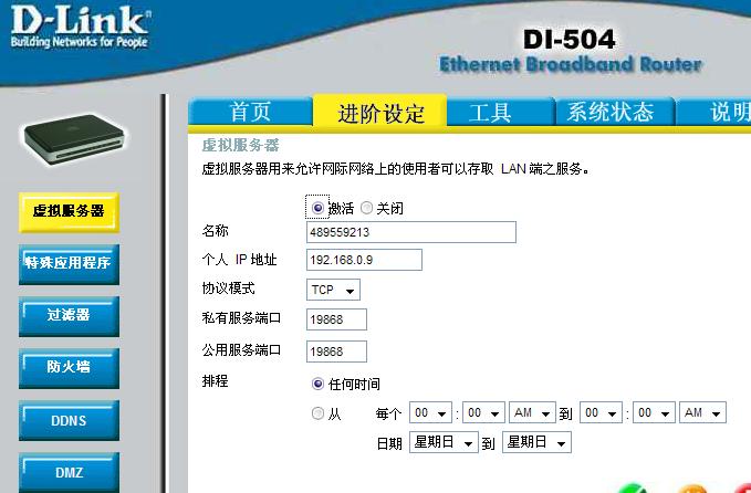 【lsf668668的贴子】电信ADSL路由器上网,路由的型号是DI—504。请知道BT映射设置的朋友告诉一下,谢谢!