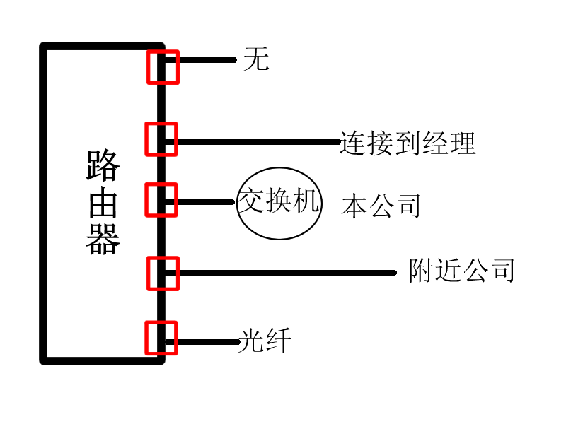 先解释下图吧!路由器有5个口子,一个是光纤的,二个是附近的一家公司,三个是我公司的,四个是连接到我公司经理的,五个空。
