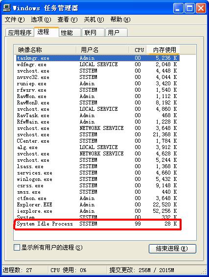 PS:SYSTEM IDLE PROCESS这个进程不算,它占用系统资源越高越好。