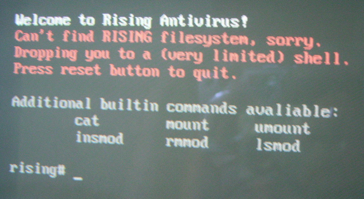 你的系统没有安装瑞星杀毒软件Cant't find rising filesystem是没有发现瑞星文件系统.