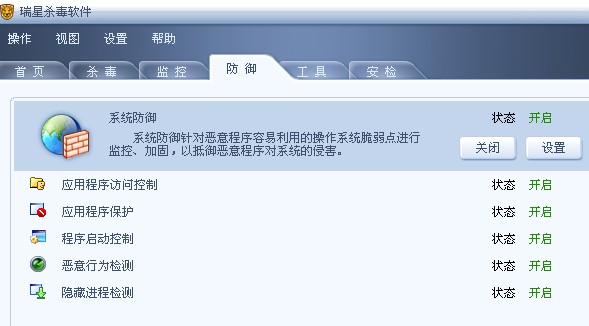 今天运行病毒测试,还发现了瑞星的自我保护规则