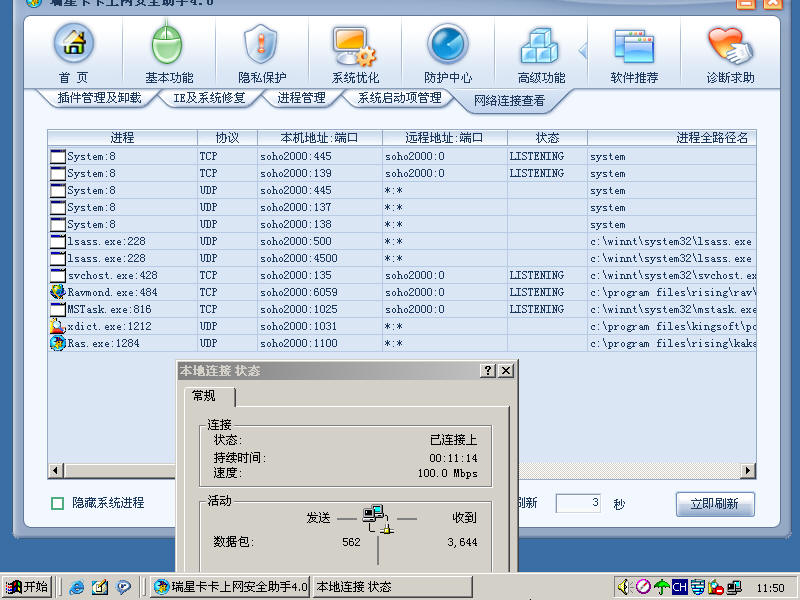 今天突然发现本地连接状态一直显示正在接收数据包,但我查看网络连接没有发现异常,这是怎么回事?难道是本地连接状态显示有误?