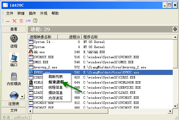 结束瑞星的进程,可以使用IceSword