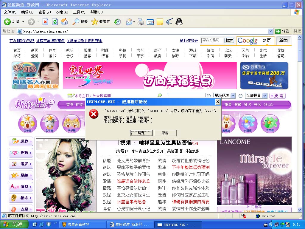 我这台机器不知道是什么问题,一打开新浪这个网页就提示如图,或者提示什么加载项错误,别的机器登陆这个网页都好使!请问这是什么原因呀?如何解决?