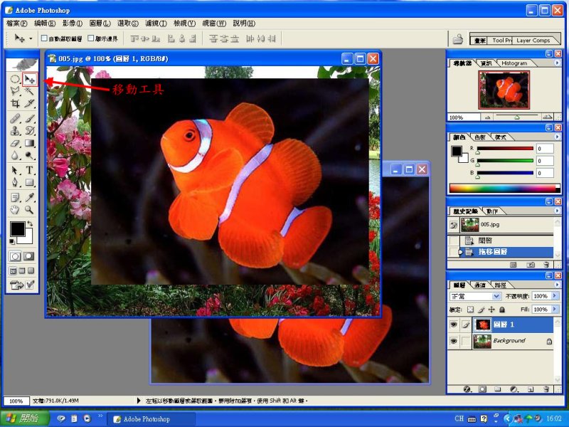 我打开了2副图片,我想把这图片上的图直接拖到另一图片当中,可我一点那图就是一个手掌,始终都无法拖放,我都关了又打开还是不行,请问怎么解决呀???