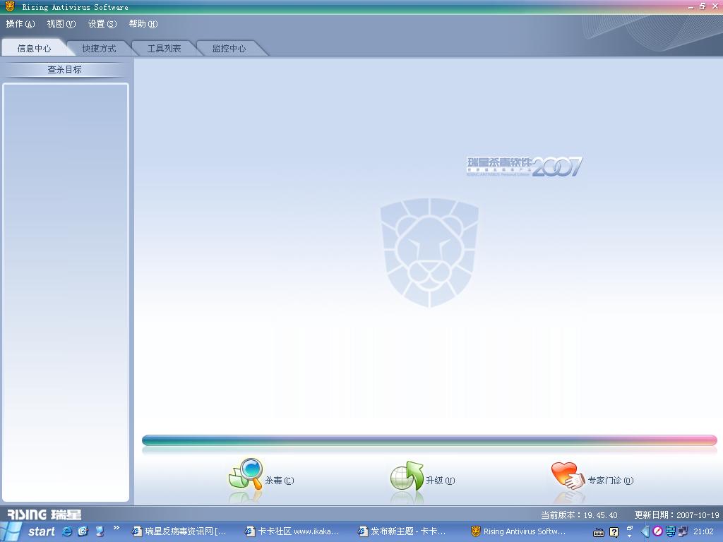10月19日 瑞星防火墙提示升级 升级后 瑞星杀毒软件就没法用了 进去以后显示这样