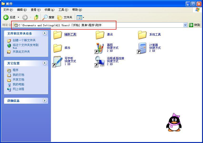 如何在“开始”--“程序”--“附件”里添加东西