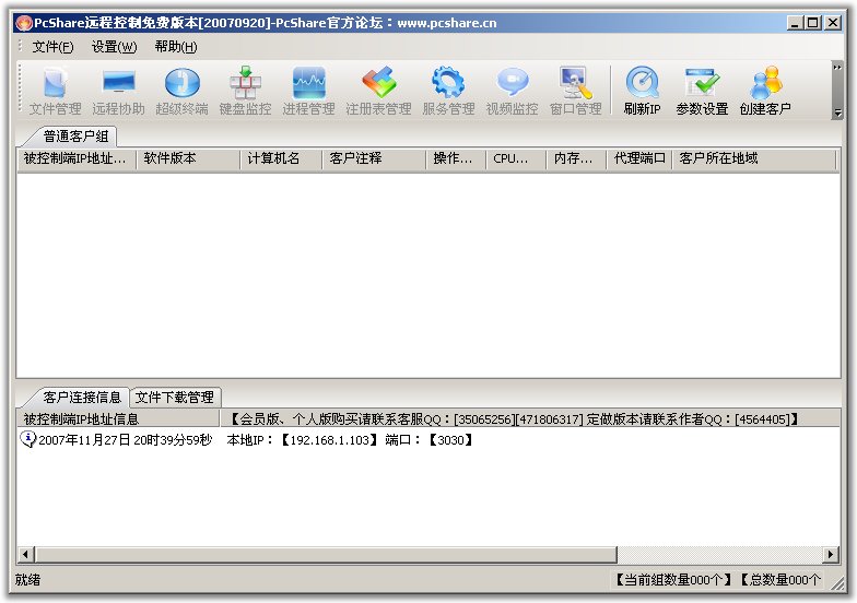 9、理论上支持65535个被控制端同时在线,当控制台所在的机器内存足够大,而且操作系统为win2003时候,能够支持几万被控制端同时在线。