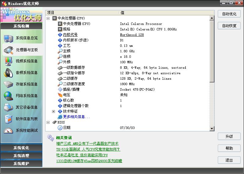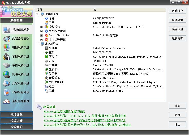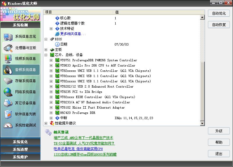 刚才用优化大师扫了一下,贴几张图上来,不知有没帮助。