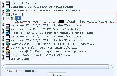 用瑞星看到的奇怪的网络连接,但在进程中却找不到.瑞星20.23.52查不到病毒.