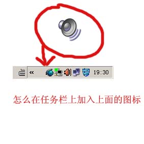 【求助】怎么在任务栏什么加入“声音图标”??【图示如下】