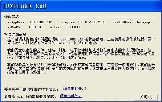 瑞星卡卡安全论坛技术交流区系统软件 IE点击某连接就“未响应”问题提示“hungapp”出错