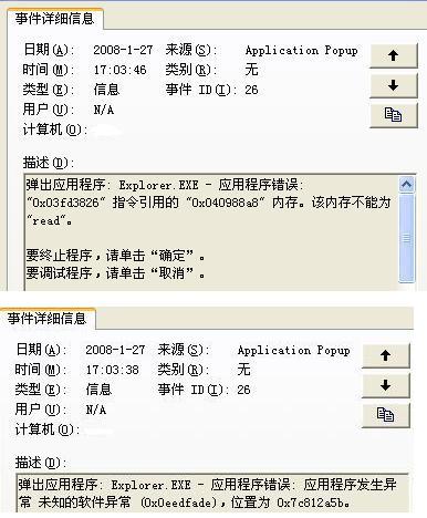 本人的电脑昨天新装的系统XP-SP2(电脑公司版)。今天在听‘千千静听’时,系统提示“Explorer.EXE错误!”。请问如何解决这个问题。