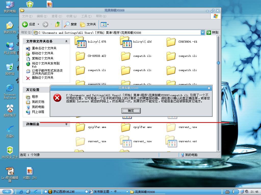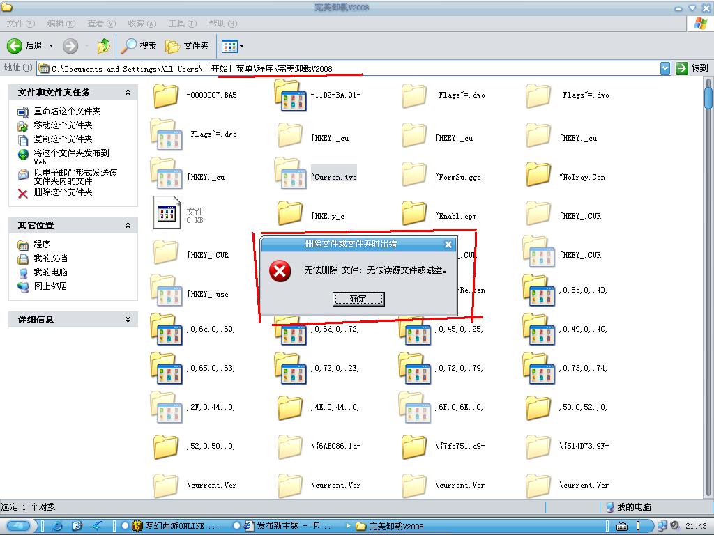 【原创】完美卸载2008系统报告说有无法修复的错误 详见贴图